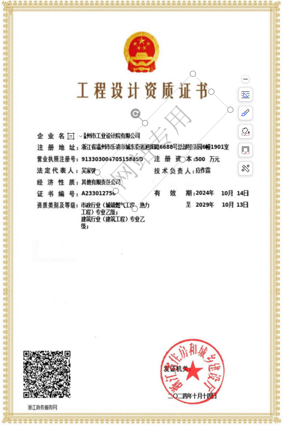 溫州市工業(yè)設(shè)計(jì)院有限公司前身為成立于1984年的溫州市化工研究設(shè)計(jì)所,現(xiàn)為溫州設(shè)計(jì)集團(tuán)有限公司和樂(lè)清市城市建設(shè)投資集團(tuán)有限公司共同出資設(shè)立的獨(dú)立法人國(guó)有企業(yè)。